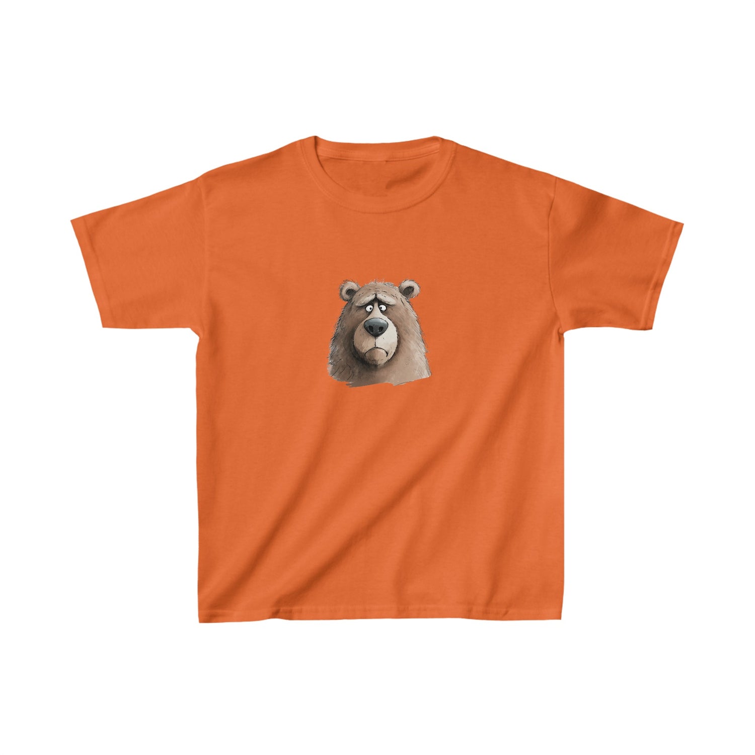 The kid's heavy cotton tee is perfect for everyday use. The fabric is 100% cotton for solid colors. Polyester is included for heather-color variants. These fabrics are prime materials for printing. The shoulders have twill tape for improved durability. The collar is curl resistant due to ribbed knitting. There are no seams along the sides.