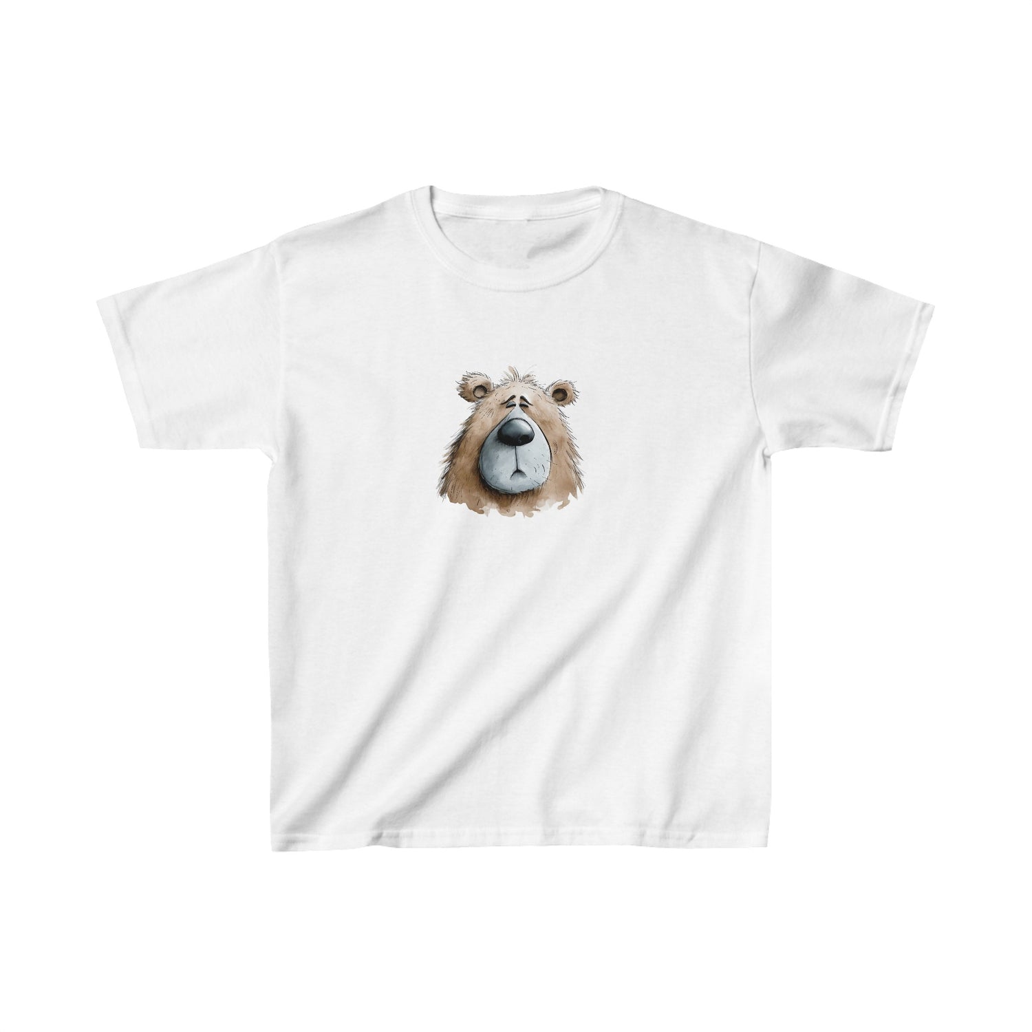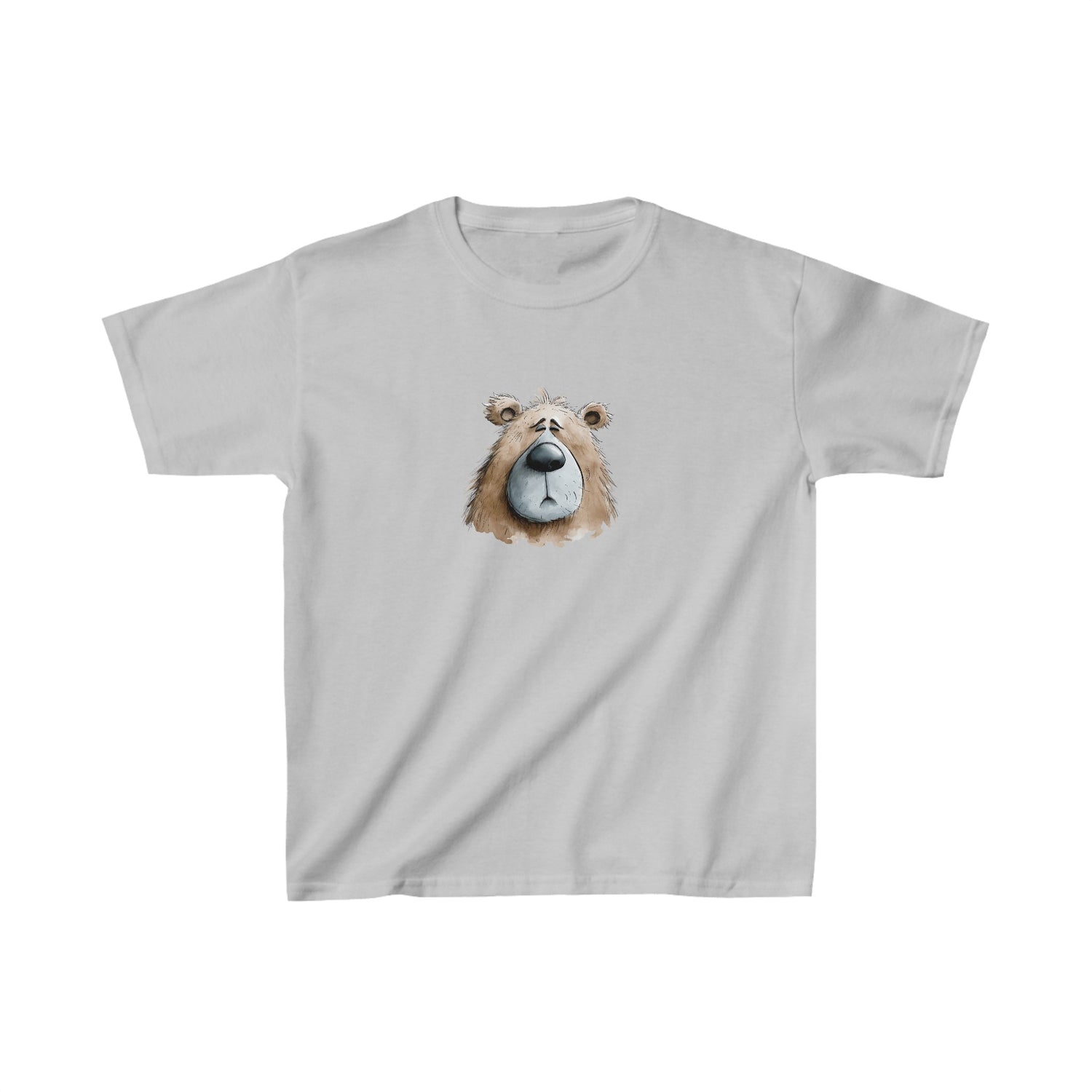 The kid's heavy cotton tee is perfect for everyday use. The fabric is 100% cotton for solid colors. Polyester is included for heather-color variants. These fabrics are prime materials for printing. The shoulders have twill tape for improved durability. The collar is curl resistant due to ribbed knitting. There are no seams along the sides.